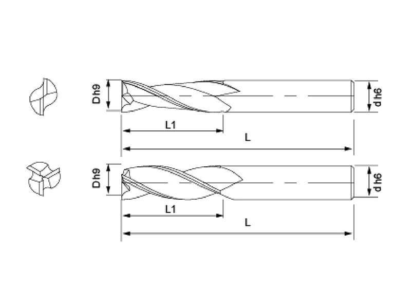 | 產品編號 ltem code | 刃徑(D h9) | 刃長(L1) | 柄徑(d h6) | 全長(L) |