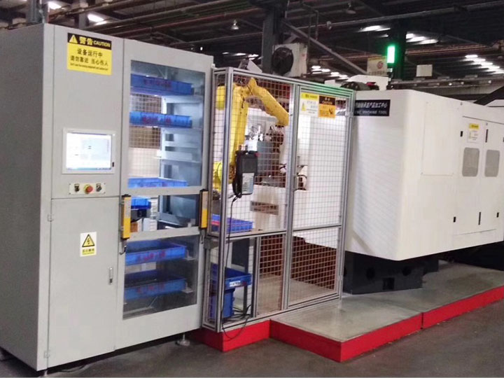 該回轉式制造單元是一個智能制造單元,從毛坯至加工、到裝配、到檢測、到成品裝配一次完成。該智能制造單元包括主體倉庫、機器人,CCD自動識別、智能加工、智能裝配、智能測量、智能監控。不合格零件自動剔除、合格自動裝箱等功能。數據收集與處理包括開機時間記錄,操作供信息,設備開功率,產品數量,合格率等相關數據的統計與分析,完全實現無人化生產。